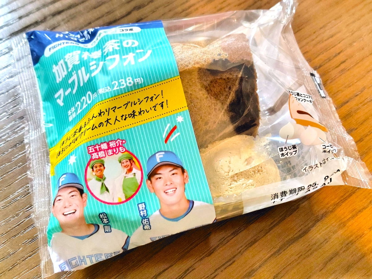 ファイターズ選手とHTBで考えたというパンがローソンから販売されており、「加賀棒茶のマーブルシフォン」と「ピスタチオショコラ」を購入しました。